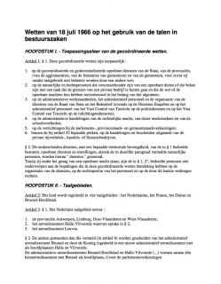 Koninklijk Besluit van 18 juli houdende coördinatie van de wetten op het gebruik van de talen in bestuurszaken. Deze bestuurstaalwetten coördineerden de wet van 2 augustus 1963 op het gebruik van de talen in bestuurszaken; de wet van 8 november 1962 tot wijziging van provincie-, arrondissements- en gemeentegrenzen en tot wijziging van de wet van 28 juni 1932 op het gebruik van de talen in bestuurszaken en van de wet van 14 juli 1932 houdende taalregeling in het lager en in het middelbaar onderwijs en de wet van 28 juni 1932 op het gebruik van de talen in bestuurszaken. Concrete samenvoegingen: artikel 7, paragraaf 2, van de wet van 1932 op het gebruik van de talen in bestuurszaken; artikelen 1, paragraaf 1, leden 3 tot 7, en 4 paragrafen 1,3 en 4 van de wet van 8 november 1962 tot wijziging van provincie-, arrondissements- en gemeentegrenzen en tot wijziging van de wet van 28 juni 1932 op het gebruik van de talen in bestuurszaken en van de wet van 14 juli 1932 houdende taalregeling in het lager en in het middelbaar onderwijs; en de artikelen 1 tot 5,6, paragraaf 1, paragraaf 2 (partim) en paragraaf 3, 3°, 7, paragrafen 1,2,4,5 en 6, 8 tot 48 en 50 tot 56 van de wet van 2 augustus 1963 op het gebruik van de talen in bestuurszaken.
